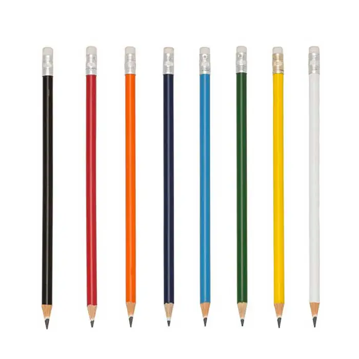 Lápis resinado colorido com borracha e grafite preto, guarnição prateada.