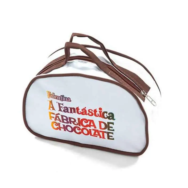 Necessaire personalizada confeccionada em em poliéster com alça de mão.