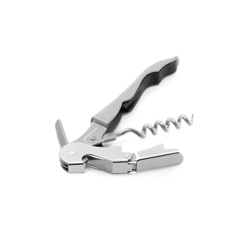 Saca-rolhas confeccionado em metal e PP com abridor de garrafas e canivete de sommelier. Espiral em aço inox na medida de 121 x 20 x 12 mm