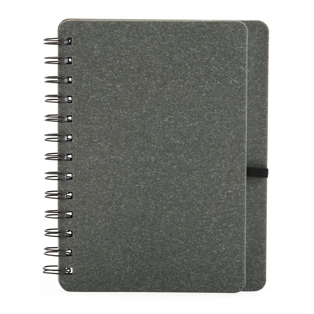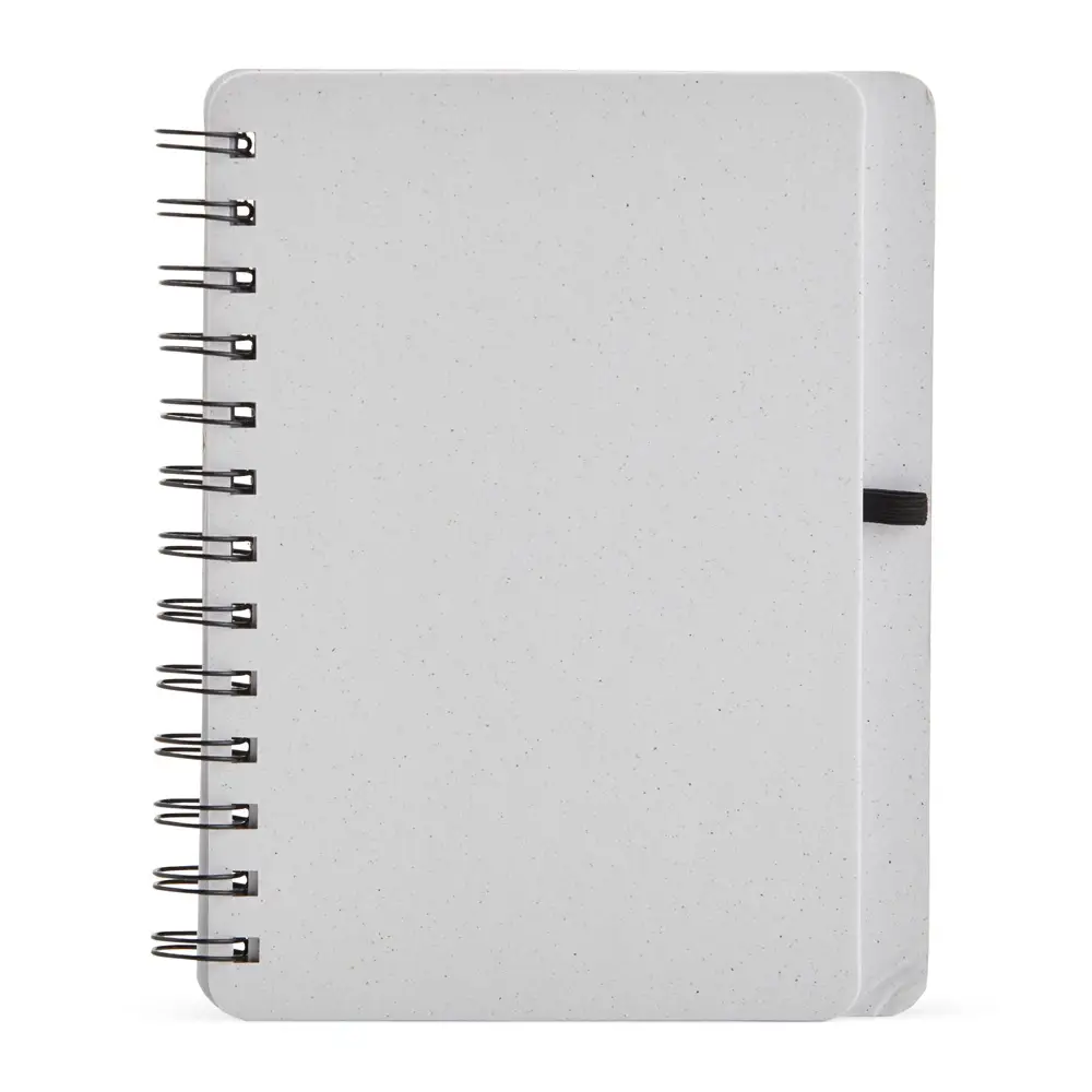 Caderneta B6 capa dura em kraft com wire-o e porta caneta. Contém aproximadamente 70 páginas pautadas na cor branca.