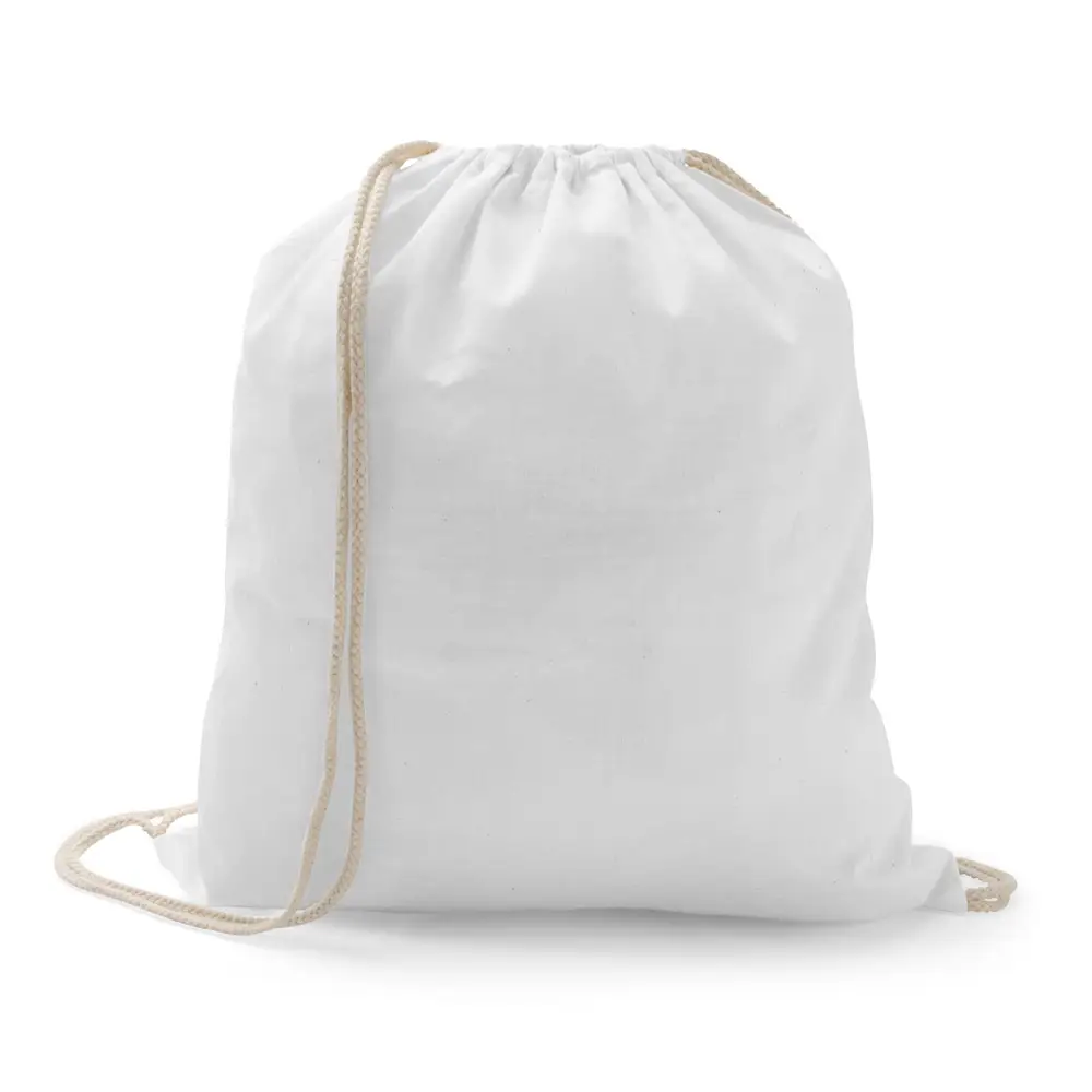 Sacola tipo mochila 100% algodão (100 g/m²) com alças. 370 x 410 mm