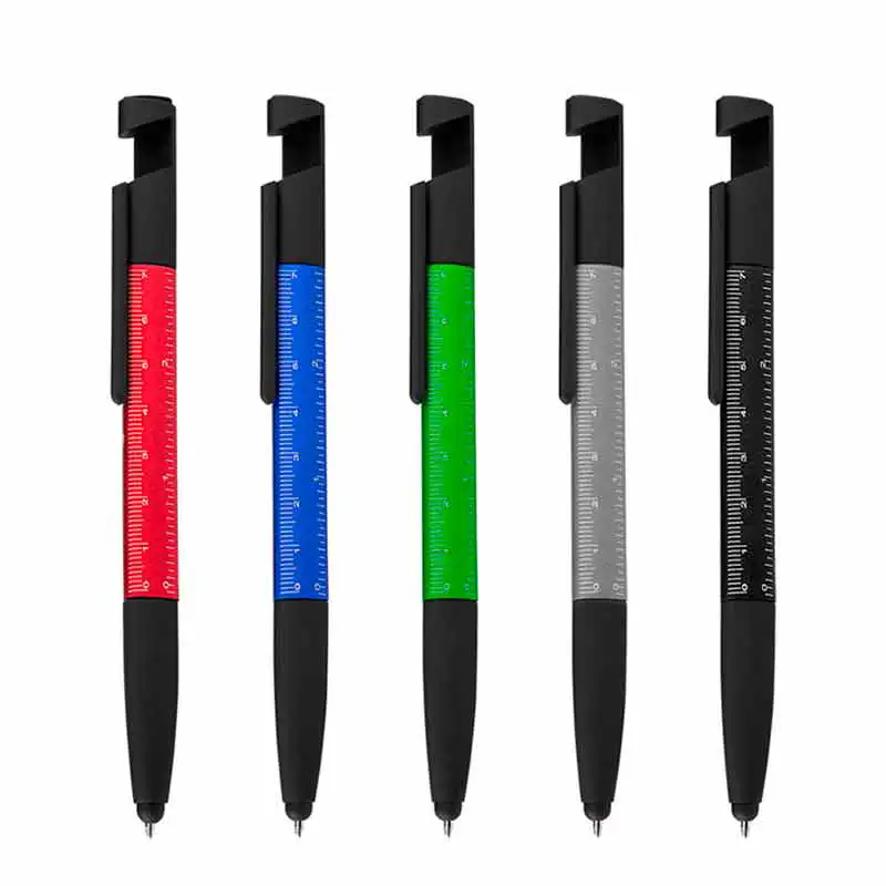 Caneta esferográfica em metal com ponta touch escrita em azul Ferramentas, apoio para smartfone Limpa tela e régua