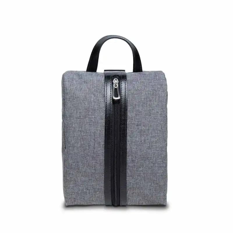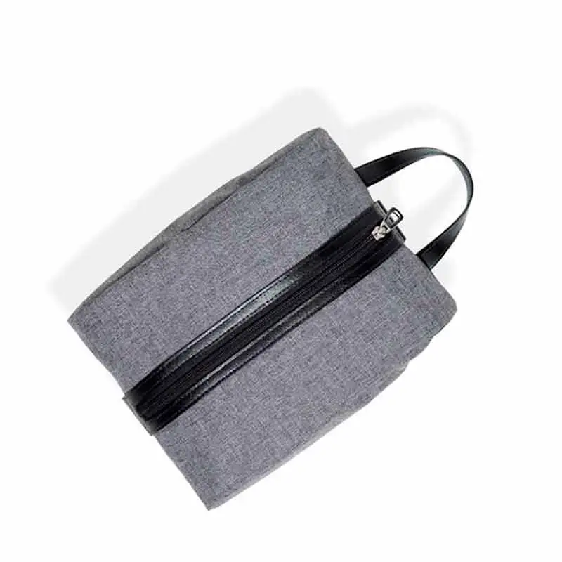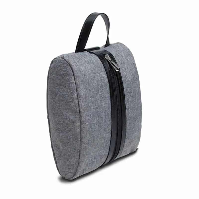 Necessaire em nylon linho cinza com zíper na vertical e alça para carregar, possui parte inferior em couro e amplo espaço interno para todos os seus pertences que desejar guardar com cuidado. Uma incrível opção de presente corporativo personalizado para todos os seus clientes e funcionários.