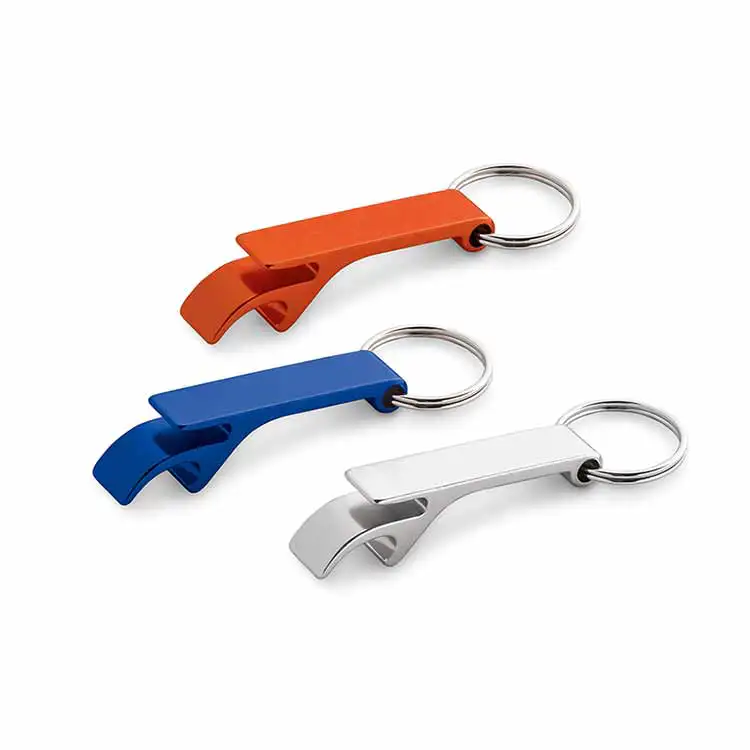 Chaveiro. Alumínio. Com abridor de garrafas.• Tamanho total (CxD): 11 x 60 x 15 mm