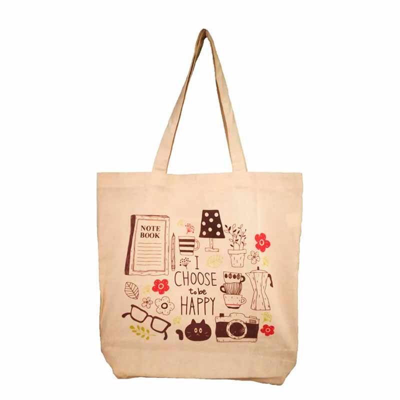 Sacola em algodão cru com alça do mesmo material, personalização por serigrafia