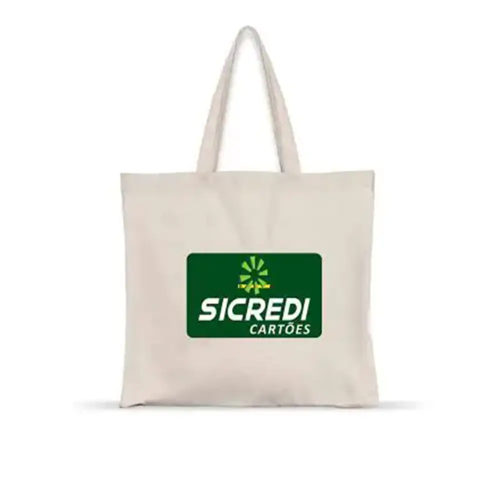 Sacola em algodão cru com alça do mesmo material, personalização por serigrafia, Produto resistente e ecológico, com diversas medidas.
