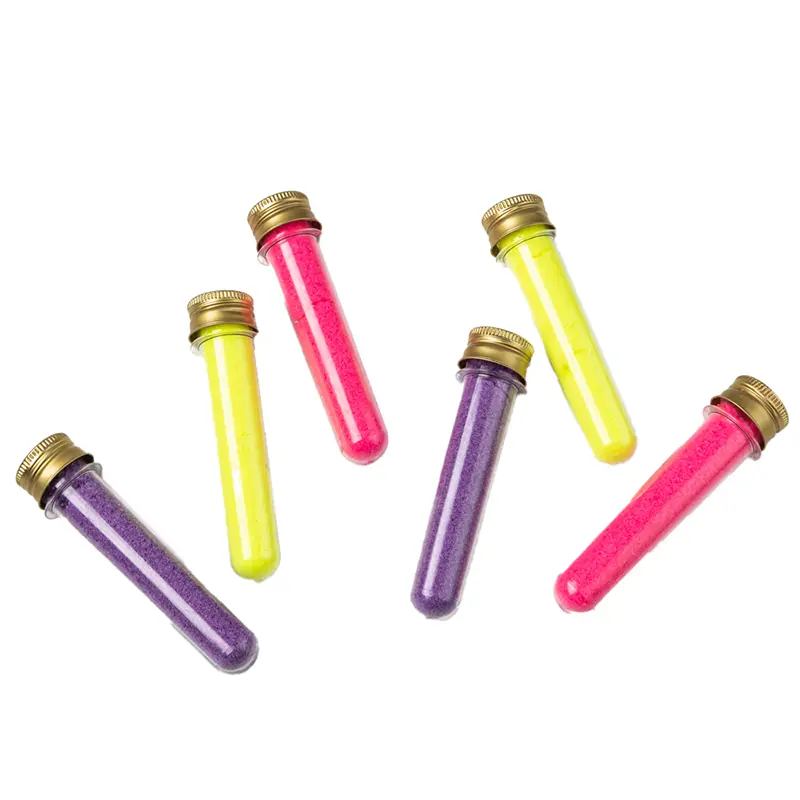 Sais de banho em tubetes pet com tampa dourada ou prata