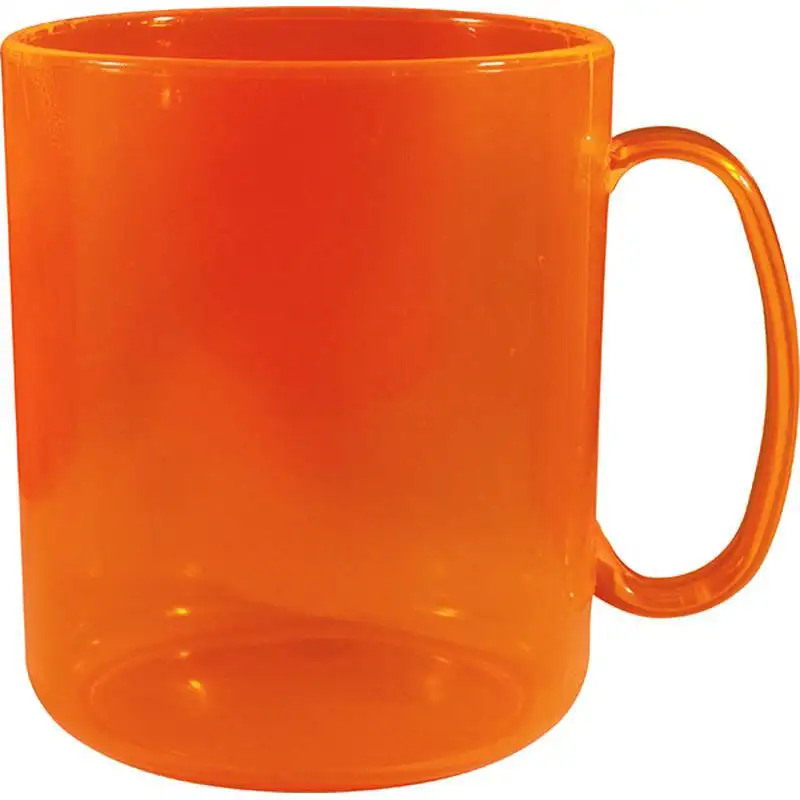 Capacidade para 400ml. Caneca PS Cristal é feita em Plástico Premium (PS), atóxico, com parede de 2mm de espessura que garante um produto robusto de alta qualidade, transparência impecável e cores vibrantes. Cor do produto - Laranja Neon