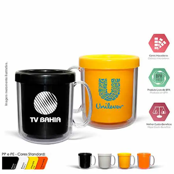 Caneca Térmica Cristal 300ml, atóxica, composta por duas partes, um corpo cristal transparente em Plástico Premium (PS Cristal) e um refil colorido em Plástico Premium (PP). Dupla parede que conserva por mais tempo a temperatura. Cor do produto - Amarelo