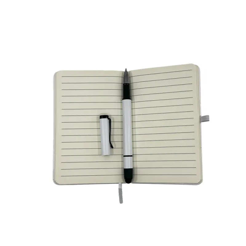 Bloco de anotações A6 pautado, 80 folhas, 70g, capa rígida e elástico.