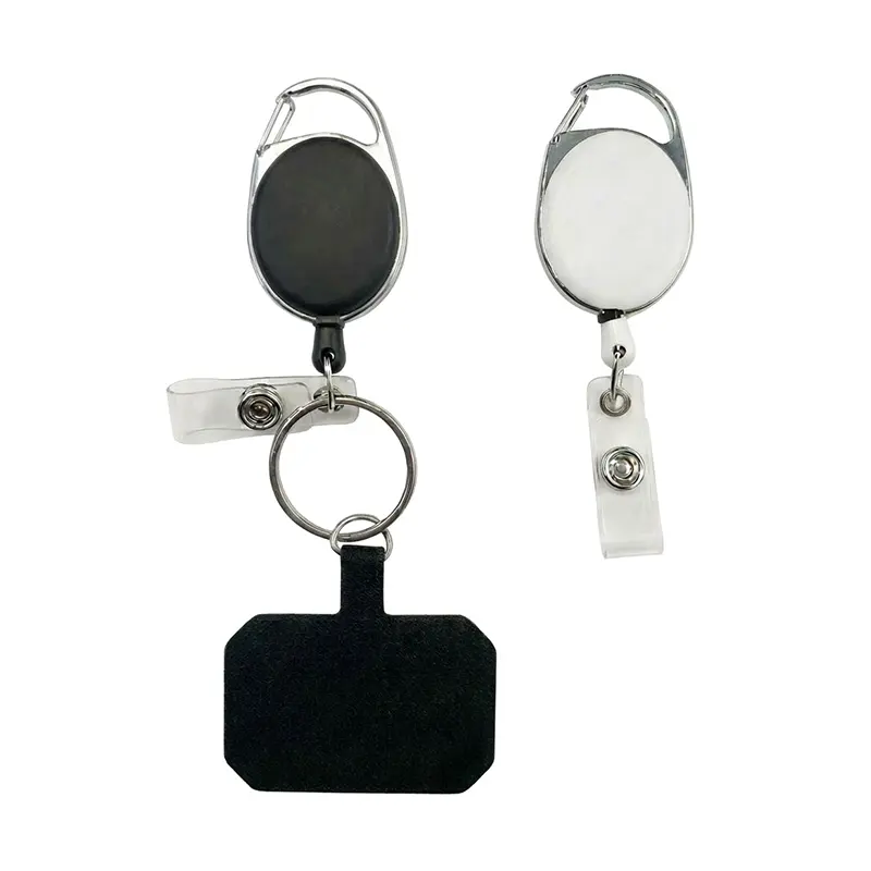 Chaveiro Mosquetão Retrátil, Porta-Crachá ou Suporte de Celular