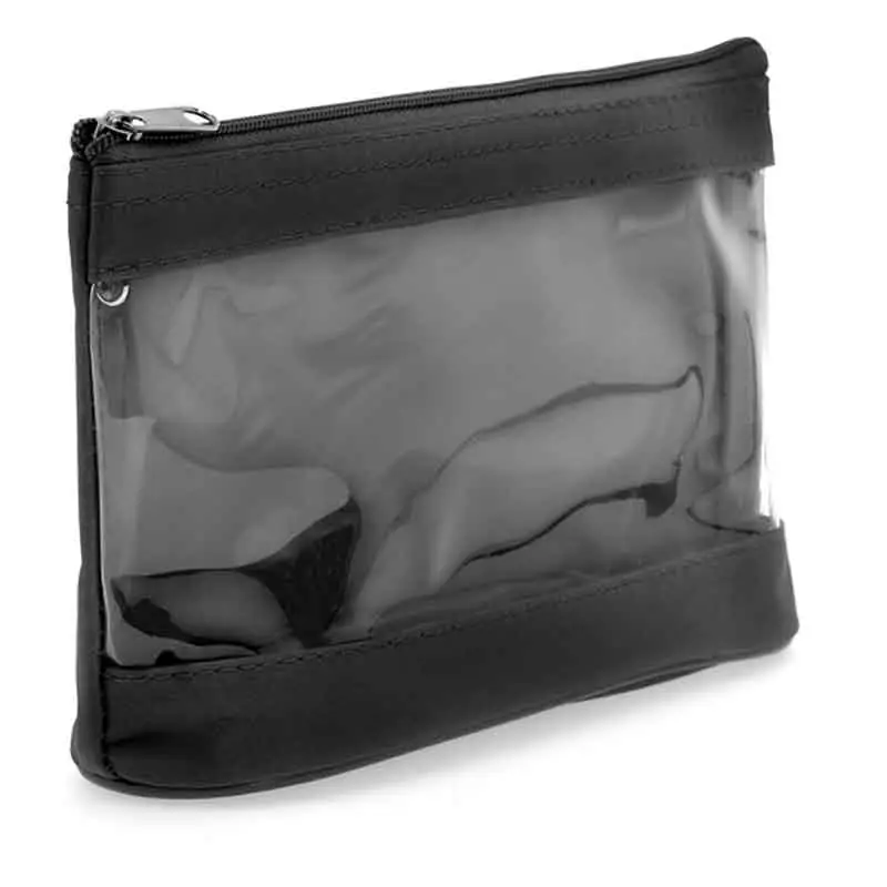 Nécessaire para cosméticos. Microfibra. Janela em PVC transparente. 170 x 105 x 60 mm