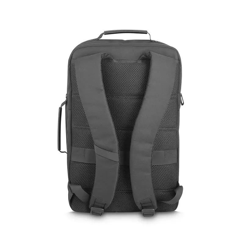 Mochila/Pasta premium, produzida em poliéster com detalhe em PU, alças de ombro acolchoadas, interior com divisórias com zíper para acomodar pequenos objetos, dois bolsos frontais com zíper, na parte das costas uma divisória com zíper, engate para mala de viagem, aceita notebook de até 15,6”, porta USB tipo C na lateral.
