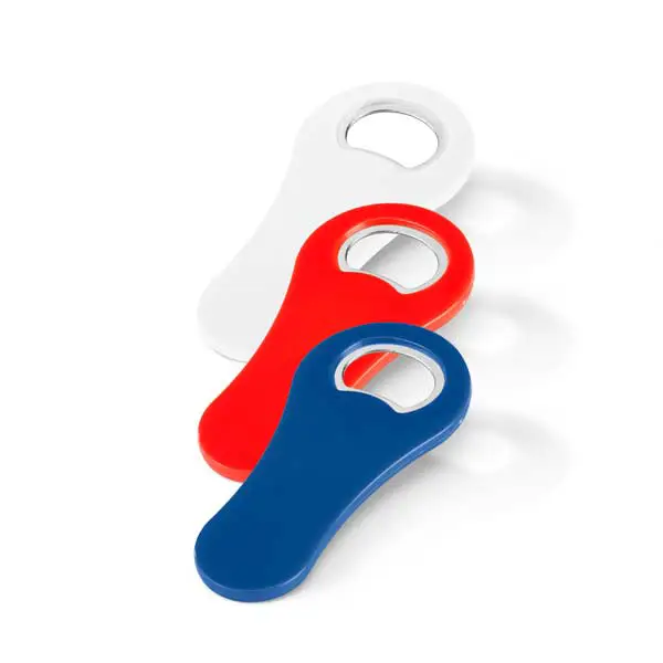 Abridor de garrafas. Com imã. 50 x 105 x 5 mm, gravado em 1 cor 1 lado em tampografia.