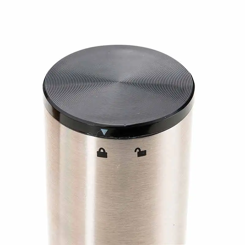 Saca rolhas elétrico com cortador de lacre. Parte superior em aço inoxidável e parte inferior acrílica, possui compartimento para 4 pilhas AA na parte superior (não acompanha pilhas) – contém desenho indicativo de abertura e fechamento da tampa; botões para extração e remoção de rolhas e parte inferior com anel cortador de lacre (removível). OBS.: Não afundar o produto na água ou qualquer outro tipo de líquido.