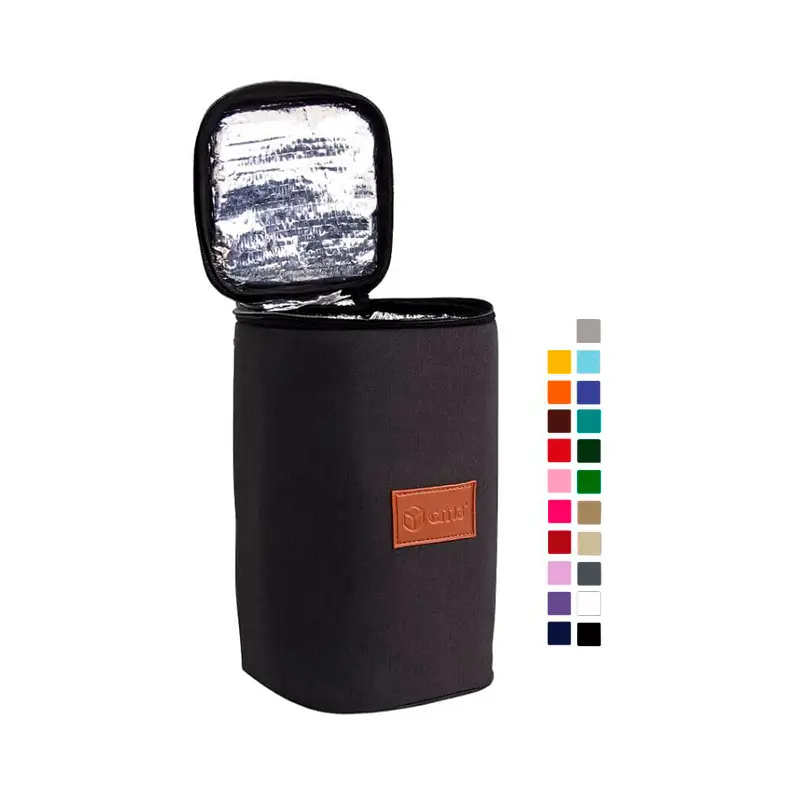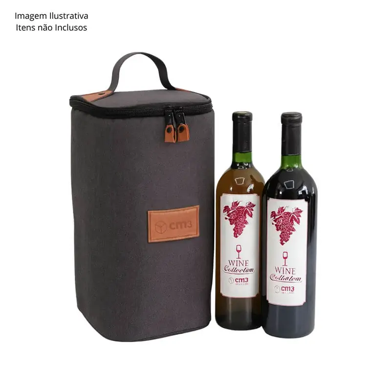 Bottle bag perfeita para transportar uma garrafa de vinho ou champagne acompanhada de dois copos. Possui interior com manta aluminizada, garantindo alta resistência e ajudando a manter a temperatura da bebida por mais tempo e