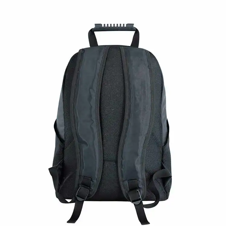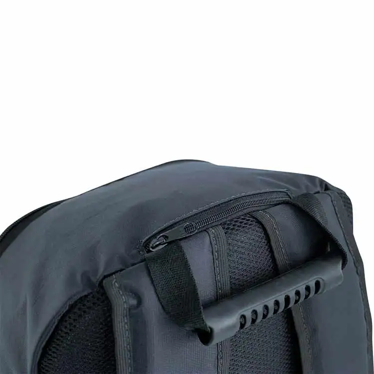 Mochila resistente e confortável com material impermeável, bolso frontal, bolso principal, alça de mão e alça de ombro com regulagem de tamanho.