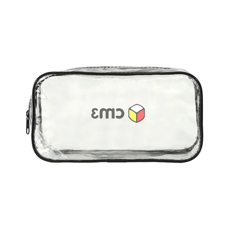 Necessaire em PVC transparente com fechamento por zíper. Ideal para auxiliar na organização de seus objetos.