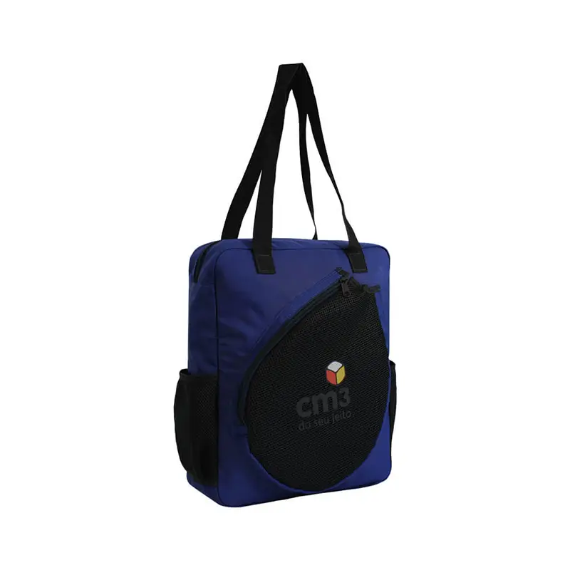 Raqueteira Beach Tennis com alça de mão, bolsos laterais em tela, bolso interno e compartimento externo para raquete.