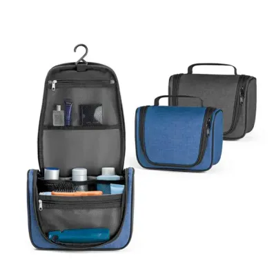 Nécessaire. 600D de alta densidade. Com vários bolsos interiores e gancho de pendurar. 250 x 180 x 105 mm.