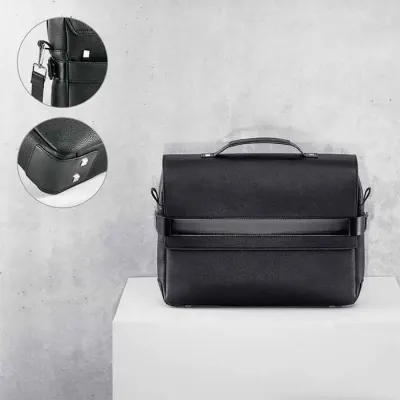 A EMPIRE I é uma pasta executiva moderna com toque de sofisticação, em polipele texturado de elevada qualidade. Possui um compartimento principal com 2 bolsos almofadados, que permitem guardar seu notebook até 14'' e seu tablet até 10.5''. As diferentes formas de transportar a pasta tornam-na um objeto versátil, algo que é reforçado pelo seu encaixe para trolley. O fecho inovador com imã que a EMPIRE I tem na lateral elevam a pasta a um objeto único. Todos os pormenores são focados tanto na sua funcionalidade como na sua estética e exemplo disso são os detalhes metálicos usados na alça, que além de assegurarem a qualidade da EMPIRE I, garantem a sua unicidade. Fornecida em sacola de non-woven. 370 x 270 x 80 mm | Sacola em non-woven: 530 x 500 x 80 mm.