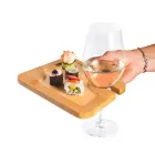 Prato. Bambu. Com suporte para copo. Ideal para servir aperitivos. Fornecido em luva de cartão. Food grade. 200 x 147 x 13 mm | Luva: 160 x 148 x 14 mm.