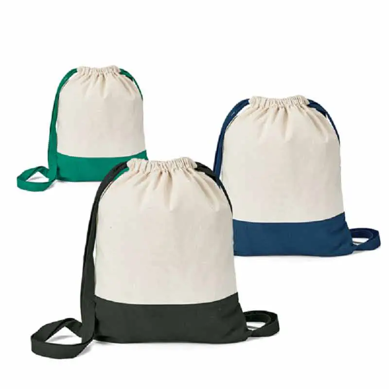 Sacola tipo mochila. 100% algodão canvas: 180 g/m². 350 x 430 mm.