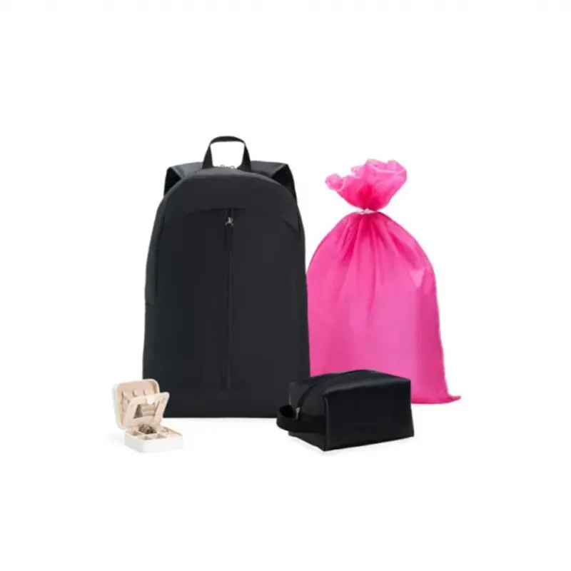 Encante com um kit personalizado exclusivo e cheio de sofisticação! Composto por três itens de alta qualidade - mochila, nécessaire e porta-joias. Este kit premium é a escolha ideal para ações promocionais que desejam marcar presença com elegância. CRB-KT9A418
