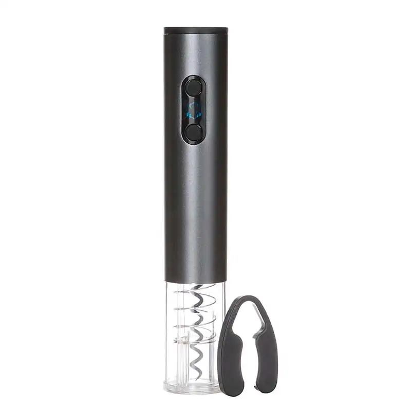 Saca rolhas elétrico com LED e cortador de lacre personalizado. Parte superior em alumínio e parte inferior acrílica, possui compartimento superior com tampa para 4 pilhas AA (não acompanha pilhas), painel com iluminação LED e botões para extração e remoção de rolhas. No modo extração a área acrílica é iluminada pelo LED. Acompanha cortador de lacre. OBS.: Não afundar o produto na água ou qualquer outro tipo de líquido.