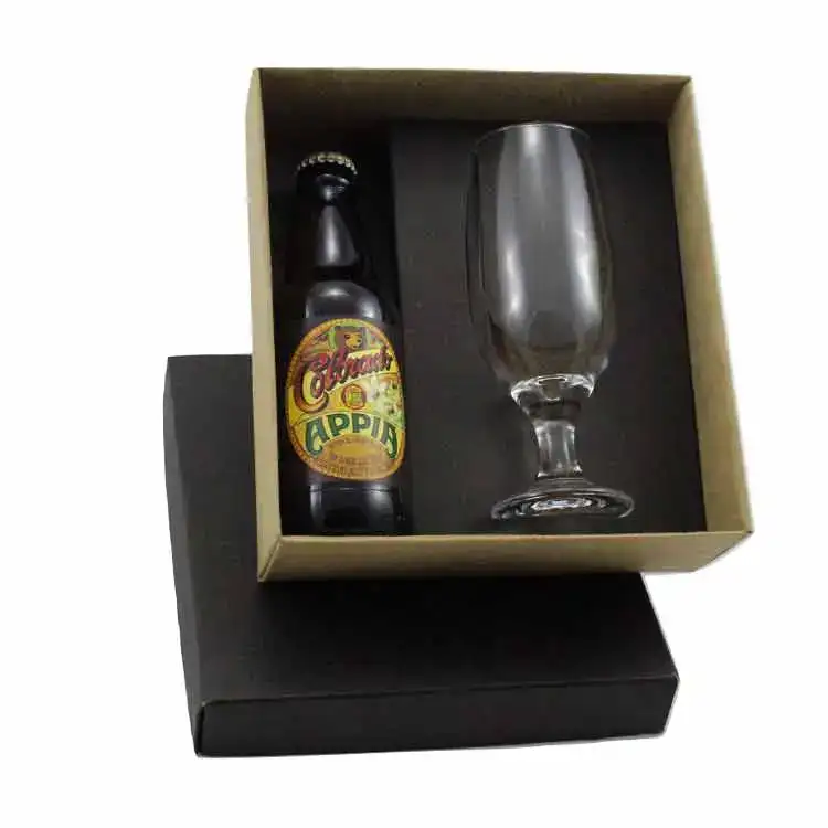 Kit Cerveja personalizado em caixa de papel, Cerveja Colorado APPIA 300ml e Taça. Gravação na taça e tampa da caixa.