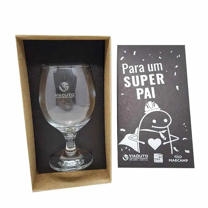 Kit Taça personalizado em caixa de papel, Taça para Vinho. Gravação na taça e tampa da caixa.