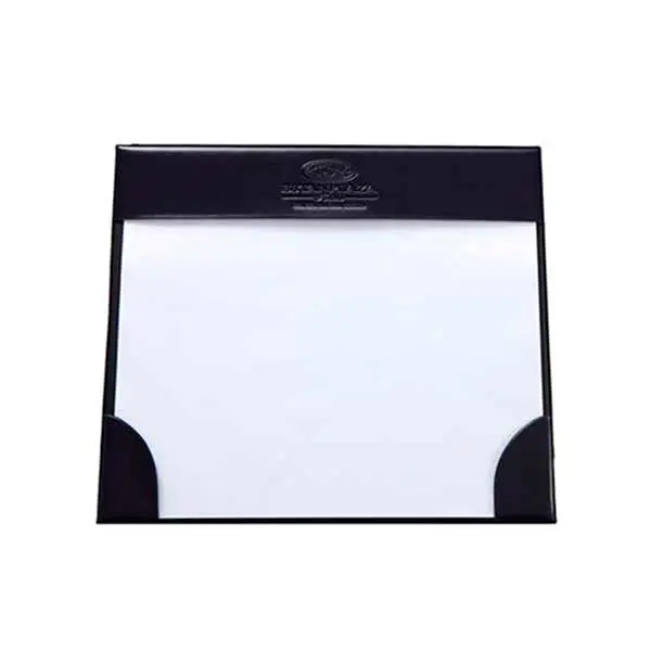 Mini risque-rabisque para folhas tamanho 21x24,5cm, em material sintético com gravação da logomarca em baixo relevo. Acompanha 12 folhas brancas.