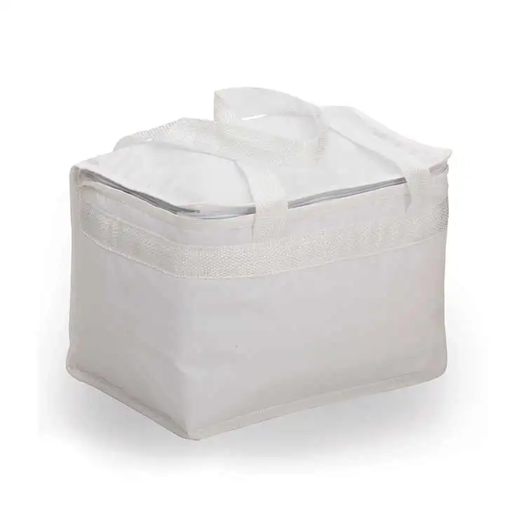 Bolsa térmica 13 litros confeccionada em bagum sintético, contém alça para mãos.