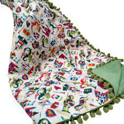 Produzida com a frente estampada 100% viscose e verso atoalhado com felpa lisa 100% algodão.