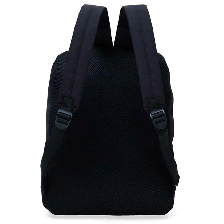 Mochila nylon poliéster para notebook. Possui compartimento grande com bolso interno para notebook até 15,6 polegadas, bolso pequeno frontal e bolsos laterais de rede. Zíperes prata, alça superior de nylon, alças ajustáveis para as costas e parte traseira revestida de espuma para maior conforto.