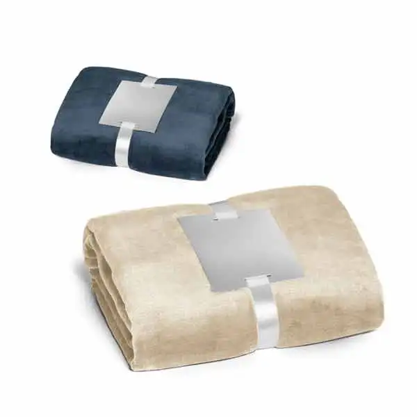 Manta. Tecido polar: 240 g/m². Com acabamento aveludado e tratamento anti-pilling. Fita acetinada e cartão para personalização. 1500 x 1200 mm | Cartão: 160 x 130 m