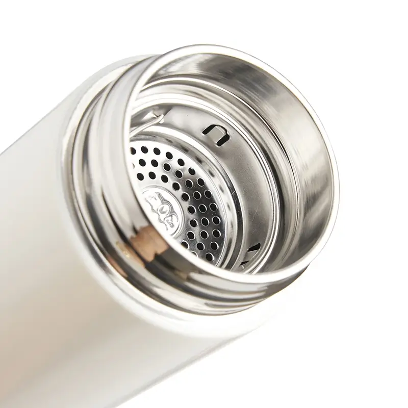 Garrafa térmica 500ml feita em aço inoxidável 304, acompanha infusor de bebidas.