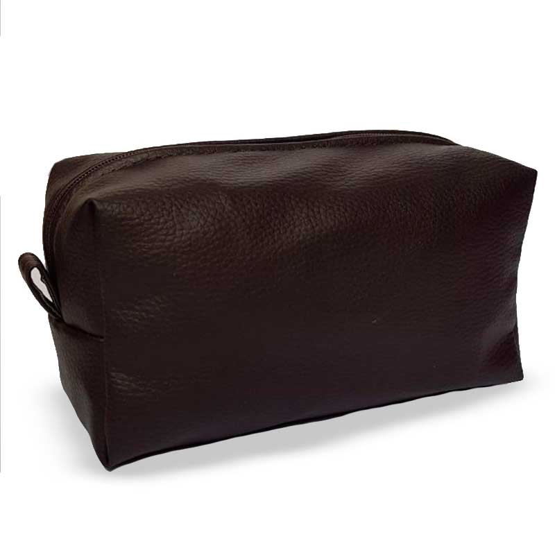 Necessaire confeccionada em tecido resistente.