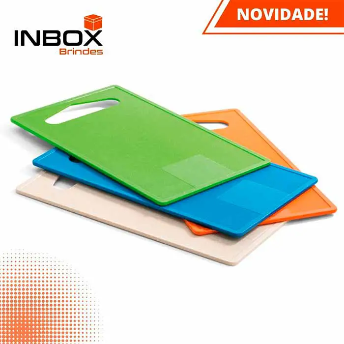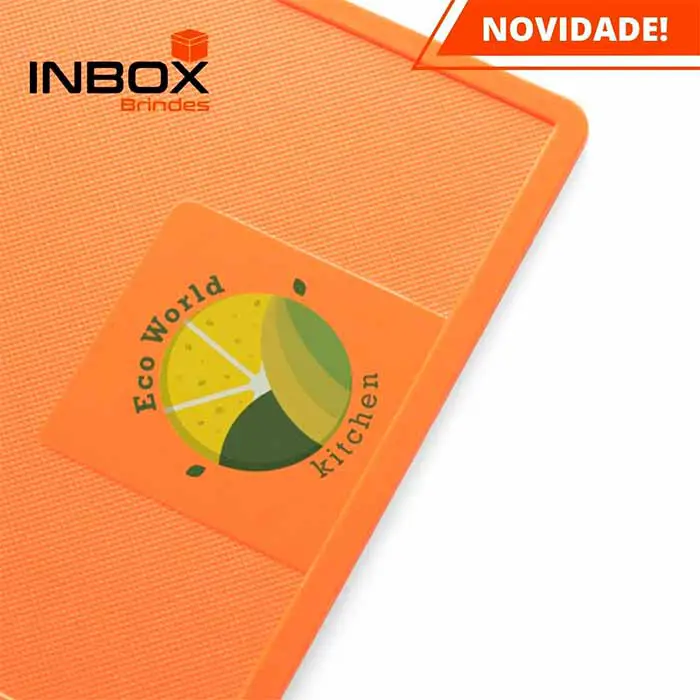 Tábua de corte em fibra de bambu (50%) e PP (50%). Contém um quadrado liso no fundo da tábua, adequado para a personalização. 237 x 140 x 4 mm