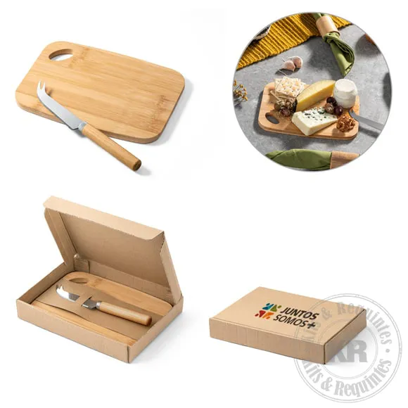 Tábua de queijo com faca, em caixa de papelão para desenhar.
