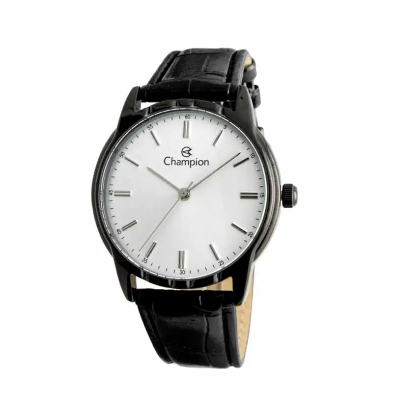 Relógio de pulso, marca Champion original, caixa em metal, pulseira de couro, mostrador prata, prova d‘água, embalagem individual.