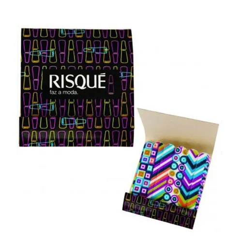 Formato Caixa Fechada: ( 6,0 x 5,5 cm ) contém 6 lixas que pode ser personalizadas de acordo com arte do cliente.