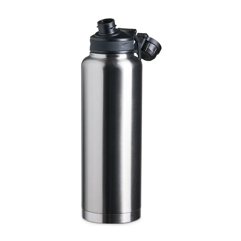 Garrafa Térmica em inox 304 de parede dupla com capacidade de 1,5 litros. Possui tampa com alça para transporte e tampa rosqueável de proteção para o bocal.