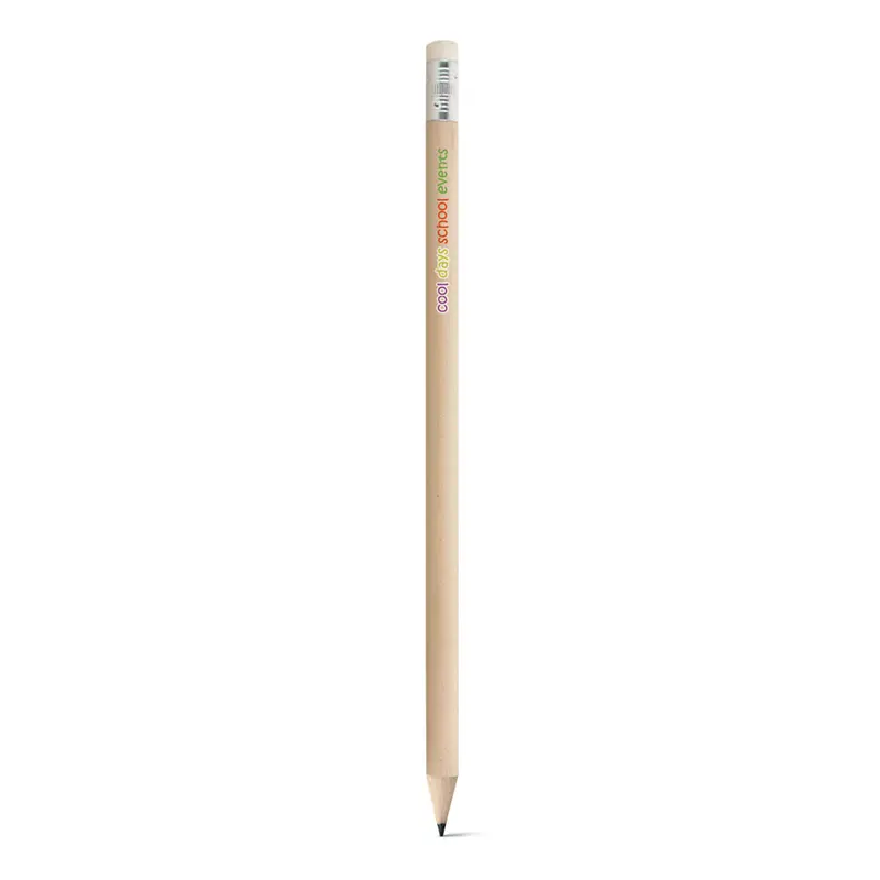 Lápis apontado com borracha. Grau de dureza: HB. Produto certificado de acordo com a portaria Inmetro nº423 de 8/out/2021. A cor e o resultado da impressão nos materiais naturais pode variar entre produtos. ø7 x 190 mm