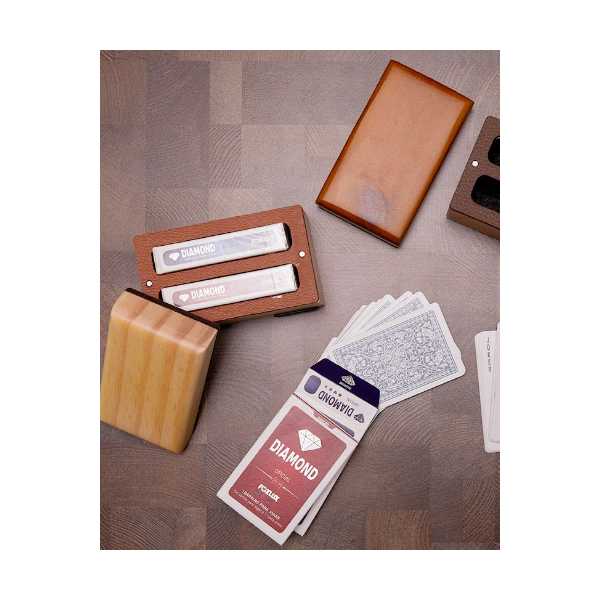 Conjunto de Baralhos Premium Personalizado, feito em madeira de reflorestamento, a caixa e revestida de recouro, com sua tampa imantada.