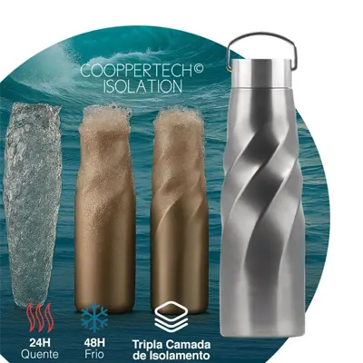 Design exclusivo e premiado, inspirado na força e fluidez do oceano, a Garrafa Vortex Ocean une elegância e desempenho extremo. Fabricada em aço inox de alta qualidade e tecnologia CoopperTech de tripla camada, que mantém a bebida na temperatura ideal por até 48 horas.Um brinde corporativo premium e sofisticado, a melhor garrafa térmica do mercado, feita para impressionar.