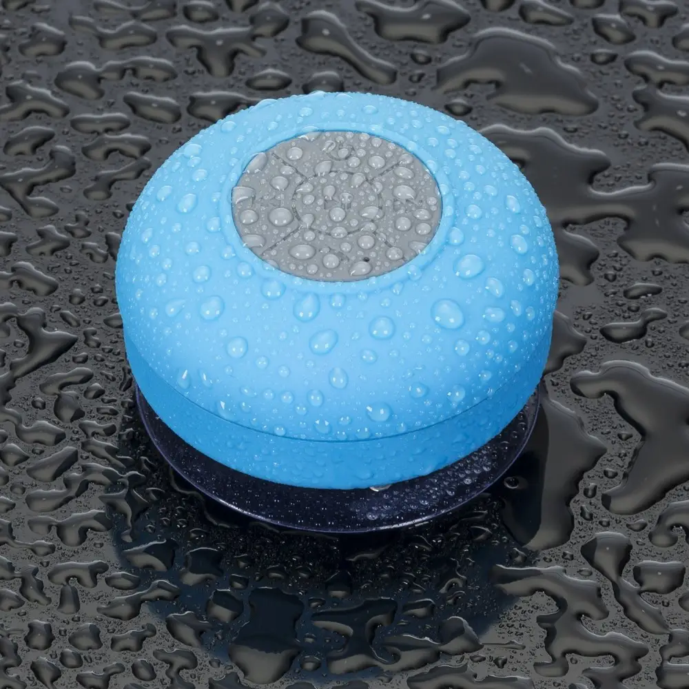 Caixa de Som Multimídia à prova D’Água emborrachada com ventosa(pode ser removida). Possui play/pause no centro e botão com desenho de telefone deve ser apertado para atender ligações. Compátivel com Iphone, Ipad, Ipod, aparelhos de celular e tablets. Acompanha cabo.