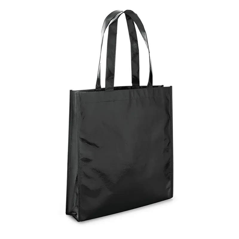 Sacola em non-woven laminado (90 g/m²) com alças de 50 cm e com laminação brilhante. 340 x 350 x 80 mm