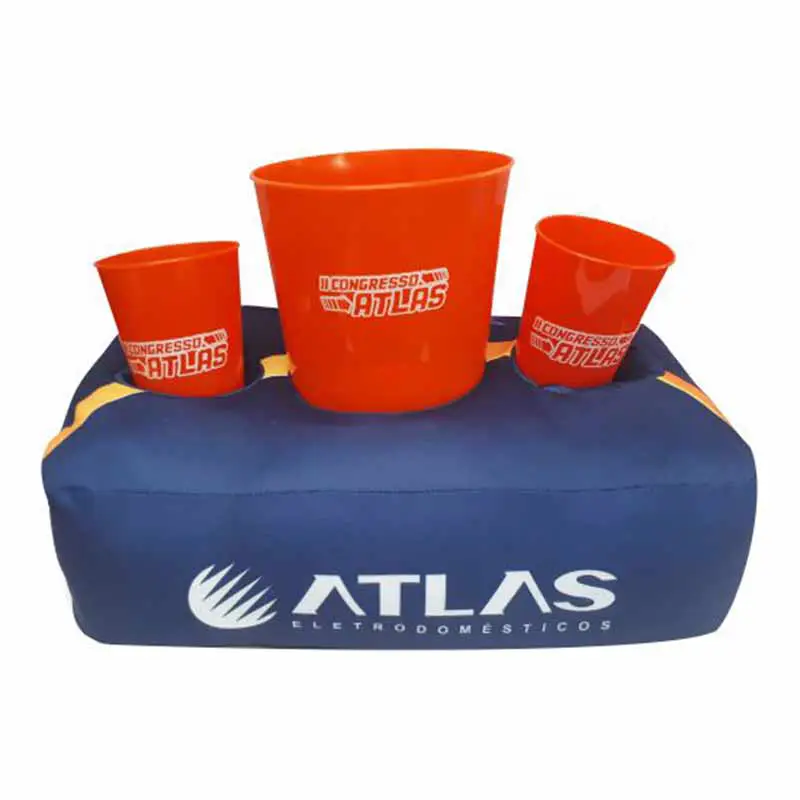 Produzido em: Tecido 100% Polyester, Impressão em Silk Screen ou sublimação, com enchimento de Fibra Siliconada, Acompanha Copos de Refrigerante e Baldes de Pipocas.
