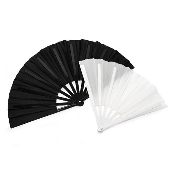 Leque em tecido Oxford e com cabo plástico, possui fácil manuseio e fechamento, tamanho grande.